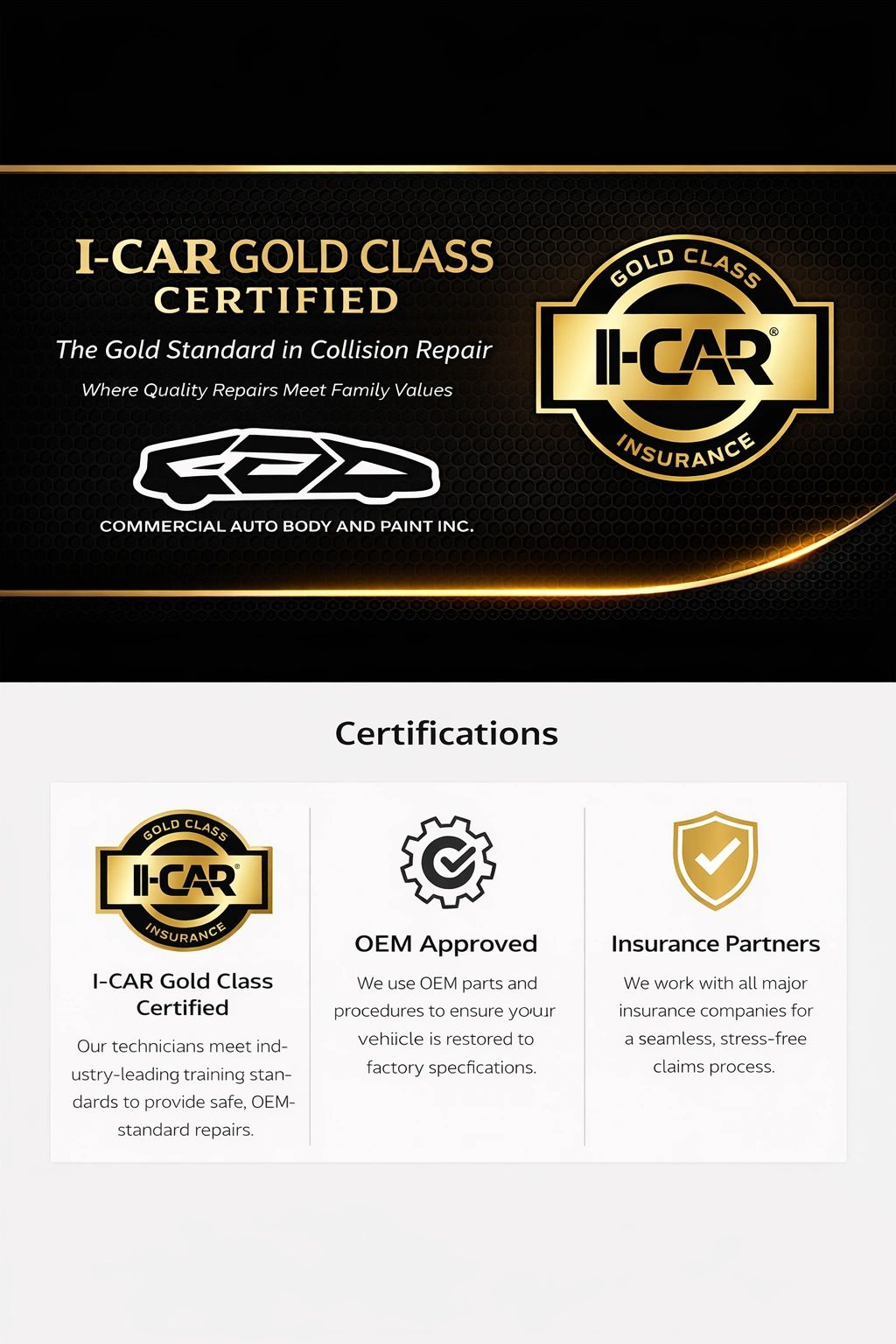 We are proud to partner with I-Car Gold to provide safe, certified, and OEM-standard collision repairs.
